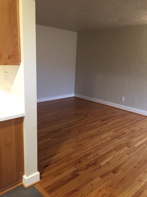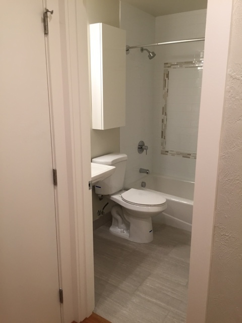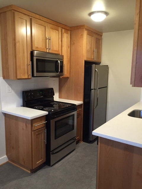Mid Century Style Building with 7 Ground floor flats and 7 top floor-Each unit has full-sized Washer/Dryer-New Remodeled 1 BR with Large Picture Windows, Lower Level, parking space in front of unit, spacious living and Gorgeous Reclaimed Hardwoods with an Open floor plan Kitchen/Nook/Living area for the Modern living space. New Stainless Steel Appliances, Modern chrome faucet with over-sized Stainless Steel Sink and Solid Wood cabinets, New Quartz counters. Spacious cabinets-An easy to keep clean/organized kitchen space plus SS dishwasher-Large bedroom that accommodates King Bed. Enjoy white subway bathroom tile to the ceiling, tile floor and modern medicine cabinet for a clean spa vibe.