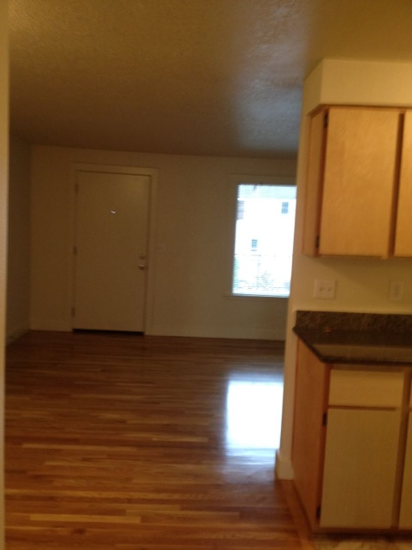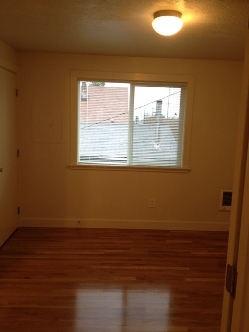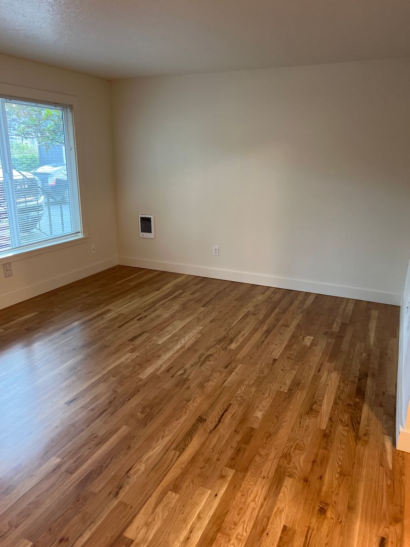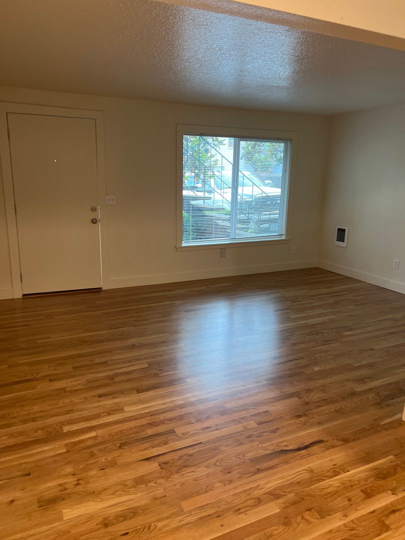 Small Mid-Century style building with Private Parking Lot and easy commuting for the Portland Areas. Gorgeous Reclaimed Hardwoods just got refinished and fresh new paint in this Remodeled Bright Spacious End unit with New Picture Windows and a Modern Open floor plan. Large kitchen with solid wood cabinets lots of storage easy to keep organized. Gleaming Onyx Granite counters  Plus dishwasher. Fully Stoned-tiled bath/shower/floor plus full-sized Kohler tub for soaking and New Modern self closing Medicine Cabinet. New Lights and fixtures. Solid-Wood spacious vanity in Bathroom; Ample closet space throughout, mirrored closet doors. Private View of Green trees outside your bedroom window. New windows, doors, fixtures, trim, electrical outlets on every wall; Forced air heat: clean & cost effective. (97 Bike and Walk Score!!!) On Bus line
